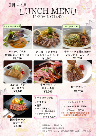 以下是CAFE&DINING WASHOW三月和四月的午餐菜单信息。
